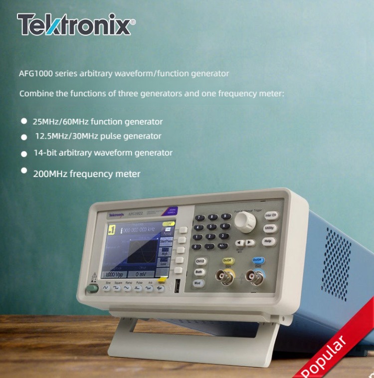 Máy phát hàm tùy ý dòng AFG1000 Series cung cấp một công cụ tạo dạng sóng với tỷ lệ hiệu suất giá tốt nhất. Nó bao gồm hai mẫu với hai kênh, băng thông lên đến 60 MHz và biên độ đầu ra lên đến 10 Vp-p. Bốn chế độ chạy, 50 dạng sóng được sử dụng thường xuyên tích hợp và bộ đếm tần số 200 MHz tích hợp đáp ứng hầu hết các nhu cầu tạo dạng sóng trong các thí nghiệm và công việc kiểm tra của bạn. Màn hình LCD TFT 3,95 inch, các nút tắt, giao diện USB và phần mềm PC cung cấp những cách trực quan nhất để cấu hình thiết bị.